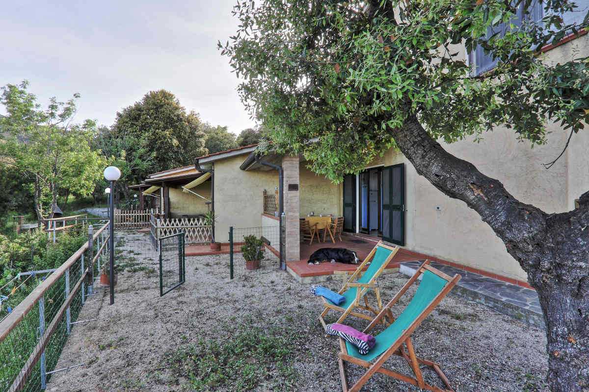 In comune con gli altri appartamenti c'è a disposizione la zona barbecue, la doccia esterna e l'ampia superficie del parco ombreggiato da piante tipiche della vegetazione mediterranea.